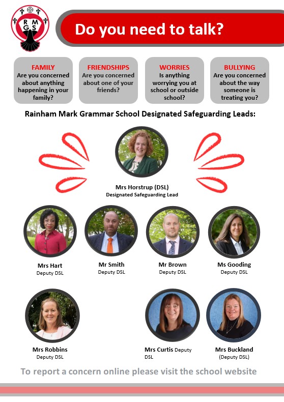 At RMGS you can talk to any member of staff, but you should know that there are a number of staff who are responsible for making sure you are safe and well cared for. People in school who can help you: